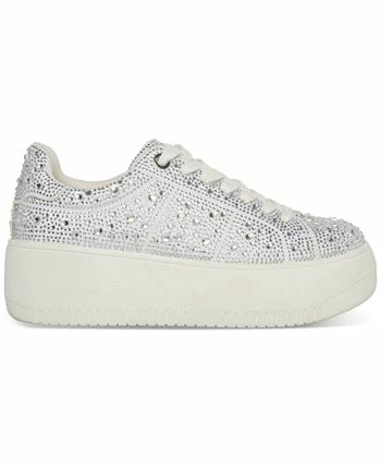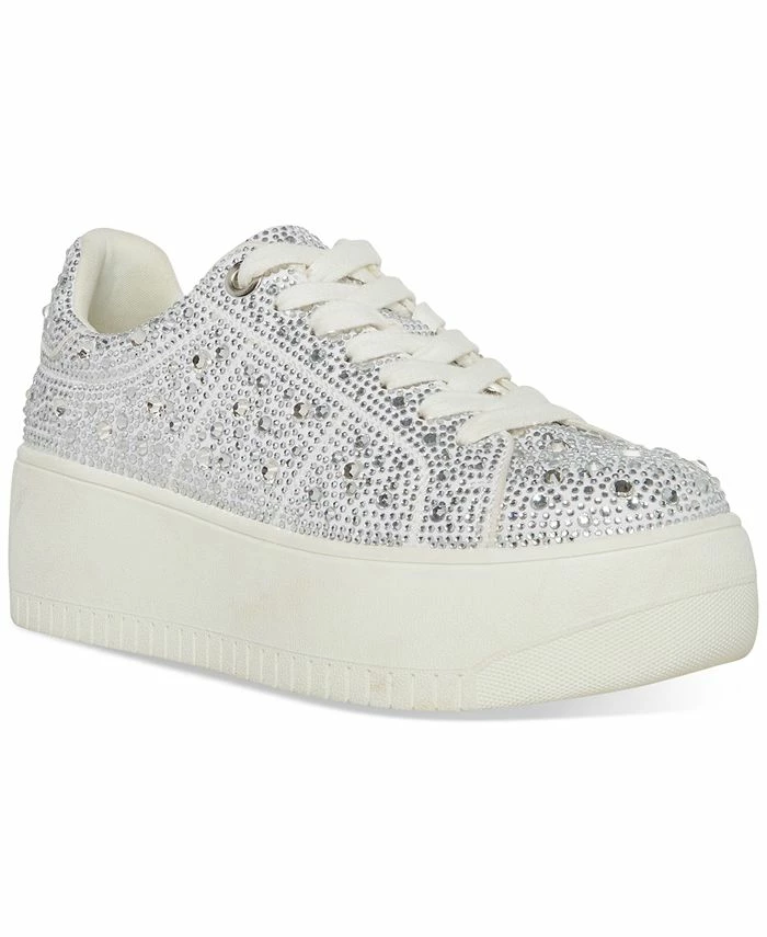 Chunky platforms add sporty lift to a low-top profile while shimmering rhinestones bring glam-girl appeal to the Rockaway sneakers from Steve Madden.